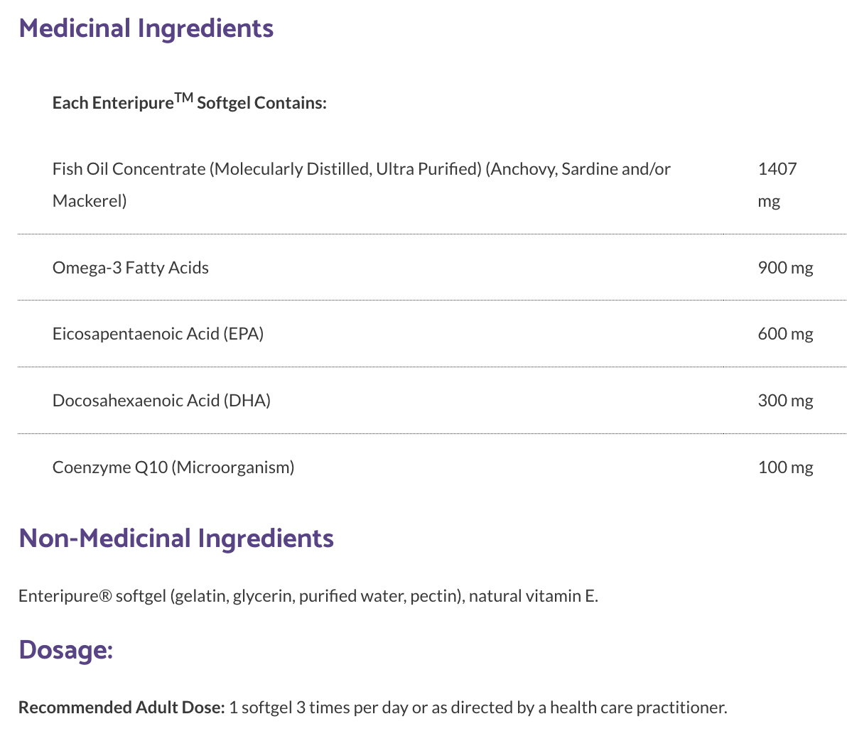 Suggested Use: 1 softgel 1-3 times per day or as directed by a health care professional. |