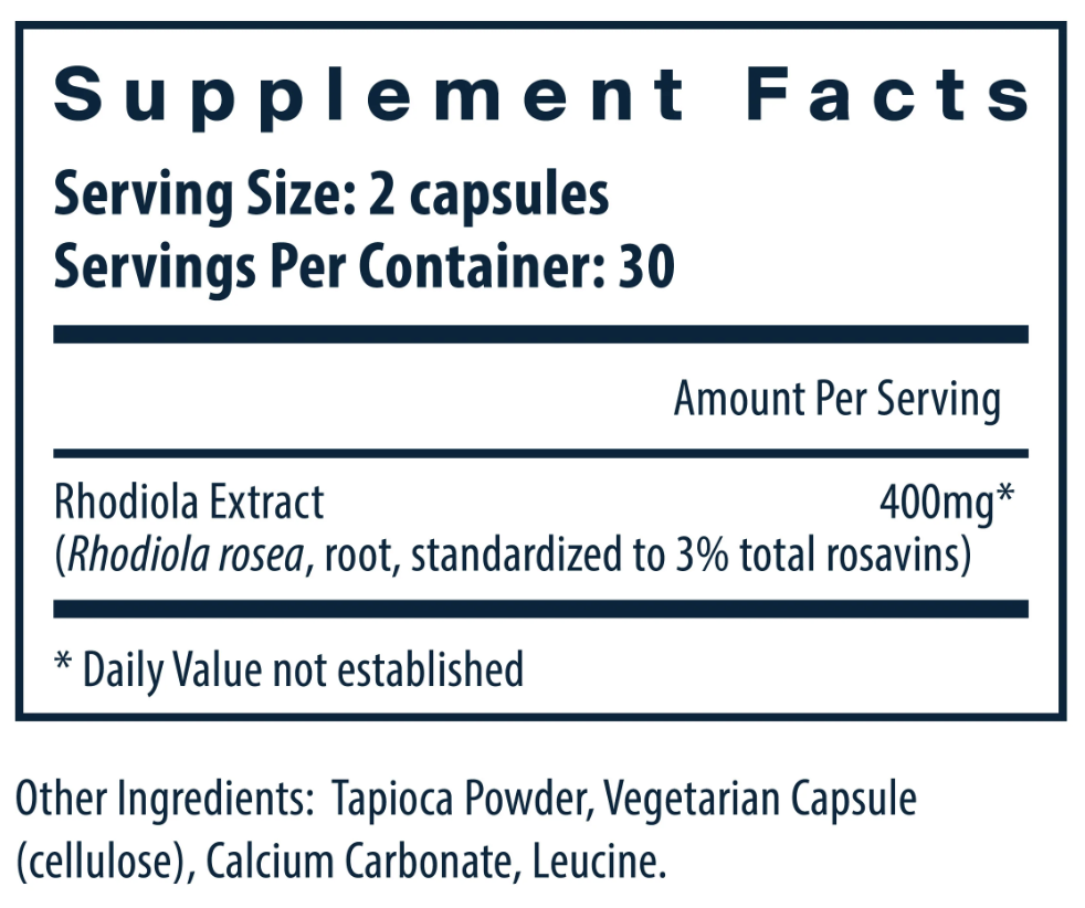 | Rhodiola Extract (Rhodiola rosea, root, standardized to 3% total rosavins) | 400mg* | |