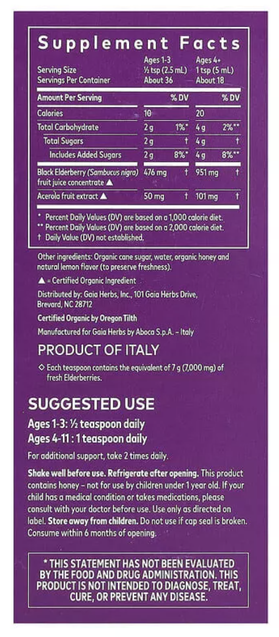 兒童黑接木骨果漿 GaiaKids Black Elderberry Syrup