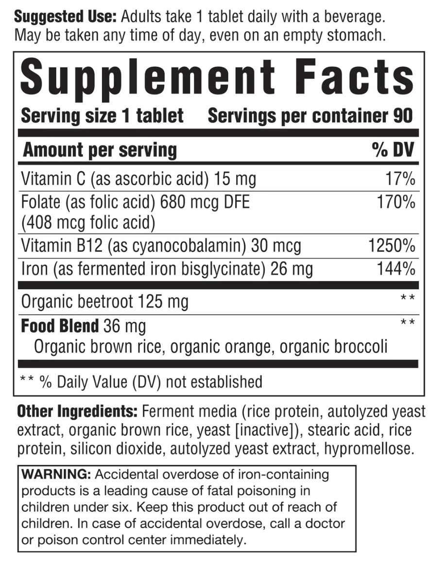 有效而溫和的鐵質補充品,臨床證明可以安全地提高鐵含量。採用全天然食物營養,更易於吸收和發揮作用,並不會出現腸胃不適。研究亦證明,它不會引起令人如噁心或便秘等副作用。